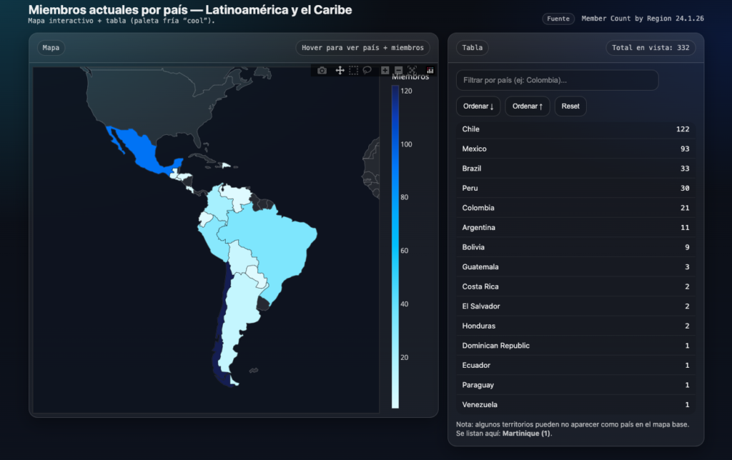 Junto con saludar a nuestra comunidad queremos destacar que Chile lidera la comunidad hidrogeológica de Latinoamérica y el Caribe con 122 miembros activos, de un total de 331 inscritos en el Cono Sur, según los datos más recientes de la International Association of Hydrogeologists (IAH), con sede en el Reino Unido. Esta cifra representa más de un tercio de los miembros de la región. Nuestro país se posiciona en el primer lugar consolidándose como un referente en la hidrogeología.